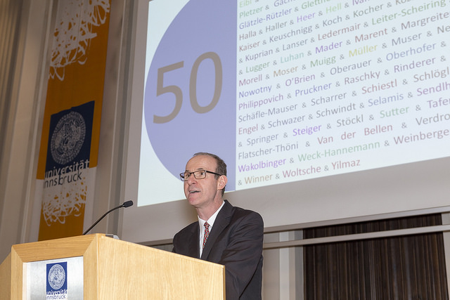 Am 23.10.2015 fand das 50-Jahr-Jubiläum des Instituts für Finanzwissenschaft in der Aula der Leopold-Franzens-Universität statt. Ein Festvortrag zum Thema „50 Jahre Finanzwissenschaft: Von der Staatswirtschaftslehre zur Verhaltensorientierung“ von Univ.-Prof. Dr. Rupert Sausgruber wurde abgehalten. Em.O.Univ.-Prof.Dr. Christian Smekal, der Vorsitzende des Universitätsrats der Leopold-Franzens-Universität, sprach in seiner Laudatio über Rückblicke und Ausblicke der Finanzwissenschaft.